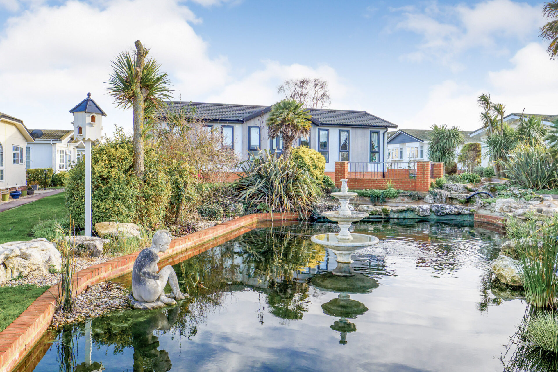 This residential development is situated in the convenient seaside village of Birchington. The park is beautifully landscaped has some beautiful water gardens and an abundance of tropical plants, palm trees and 18th century Italian statues. It is a well-established park of 140 homes, it is exclusive for the over 55's and does not allow pets.