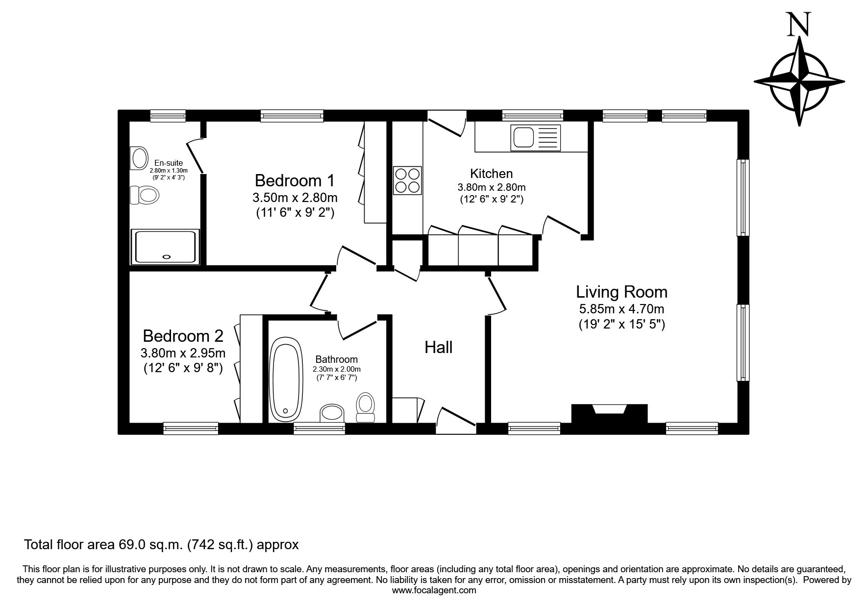 - Two bedrooms