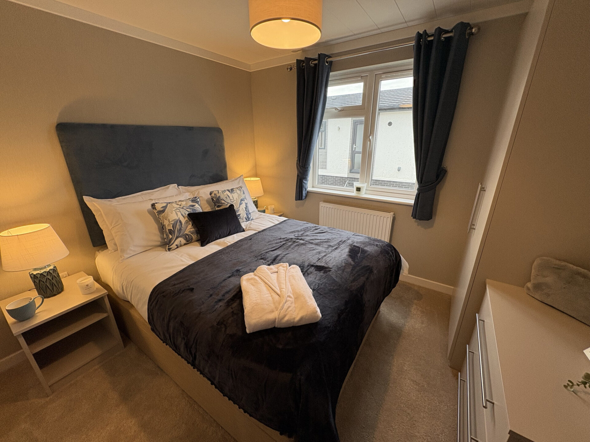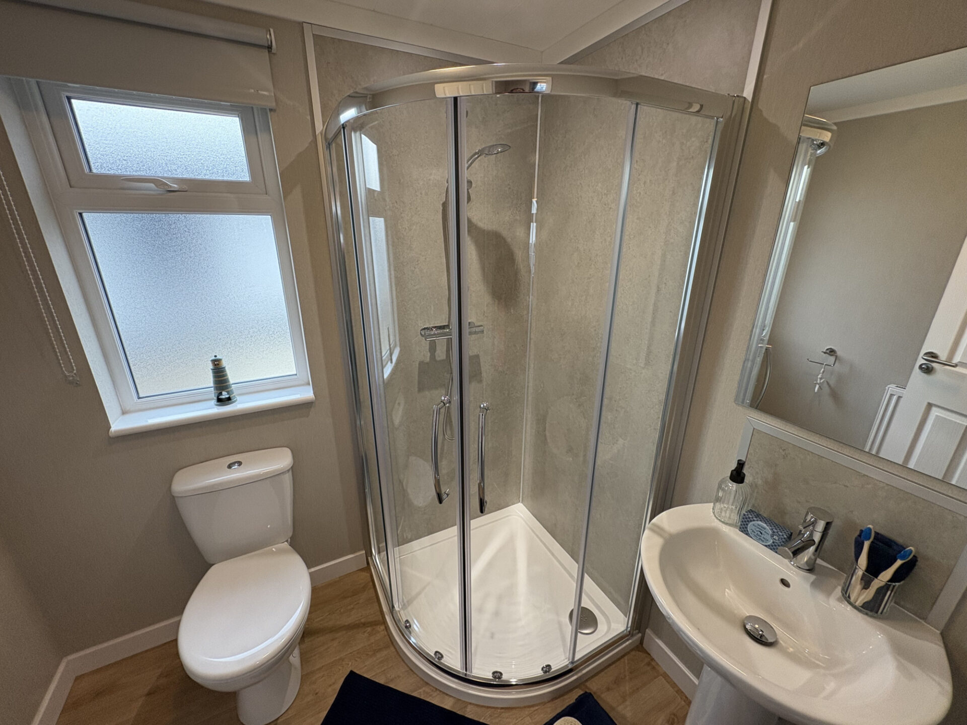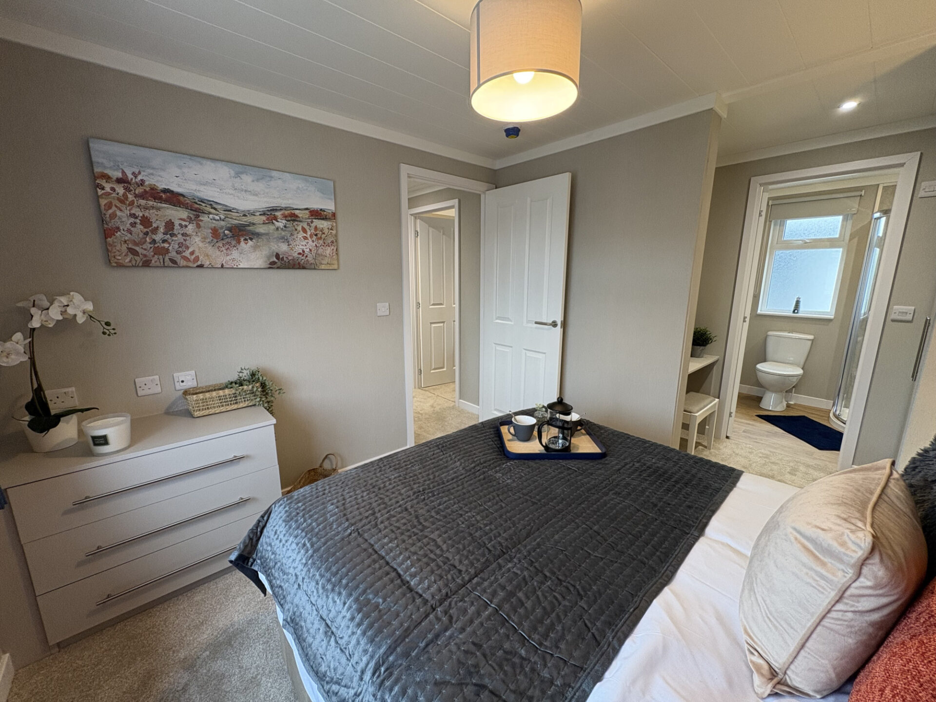 This brand new, modern-furnished Omar Westbury park home (40'x20') is perfect for those looking for a detached, easy to maintain, bungalow-style property. The home features comfortable open plan kitchen and dining area, and a comfortable living room with large windows. There are two double bedrooms, an en suite and a bathroom.