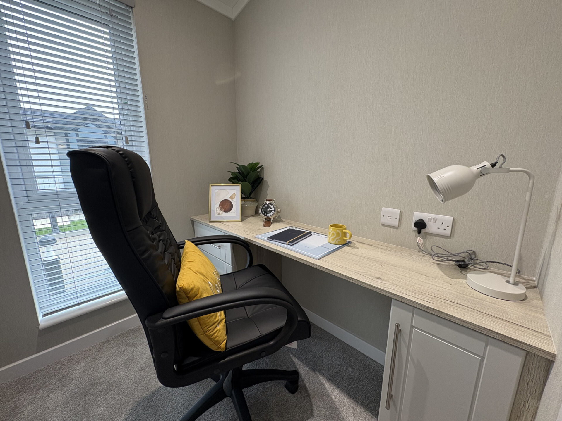 This brand new, modern-furnished Omar Newmarket park home (50'x20') is perfect for those looking for a detached, easy to maintain, bungalow-style property. The home features comfortable open plan kitchen and dining area, and a comfortable living room with large windows. There is a study, two double bedrooms, an en suite and a bathroom.