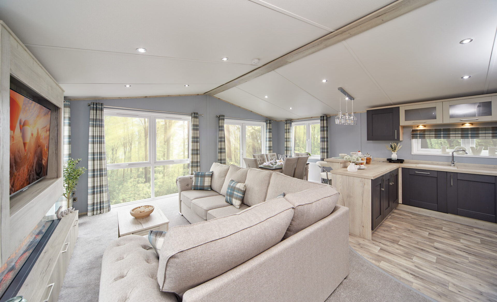 This brand new, modern-furnished luxury Whinfell park home (42'x20') is perfect if you are looking for a detached, easy to maintain, bungalow-style property. This home has an open plan layout, with a modern kitchen with integrated appliances, dining area and a comfortable lounge space with large windows and electric fireplace. There is a large master bedroom with a en suite and walk in wardrobe, there is second twin bedrooms and a bathroom.