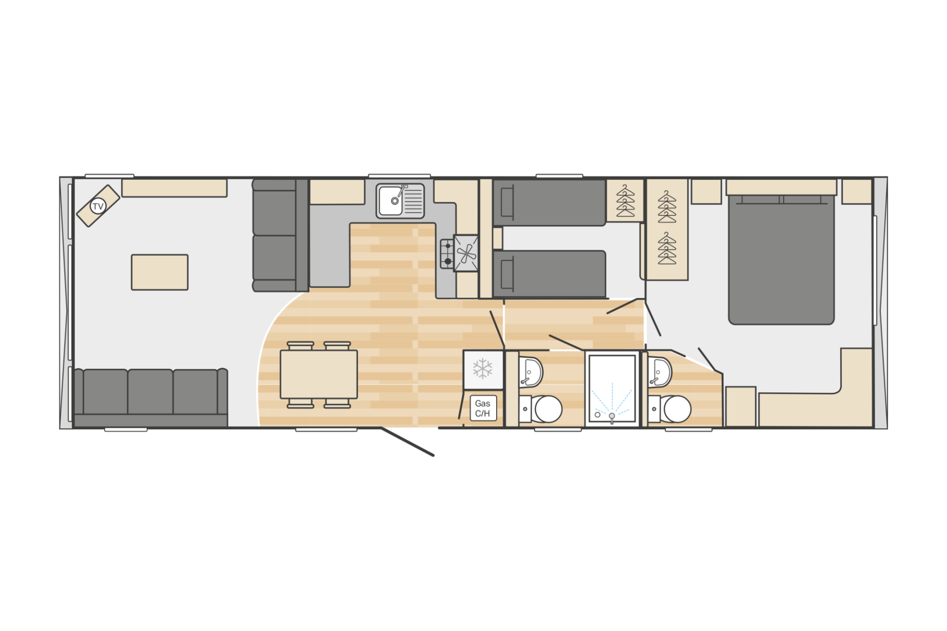 This brand new, modern-furnished Swift Bordeaux (38'x12') luxury lodge is perfect for those looking for a detached, easy to maintain, bungalow-style property. The property has a modern, open-plan kitchen, living and dining space, one double bedroom, one twin bedroom and bathroom and a second toilet.
