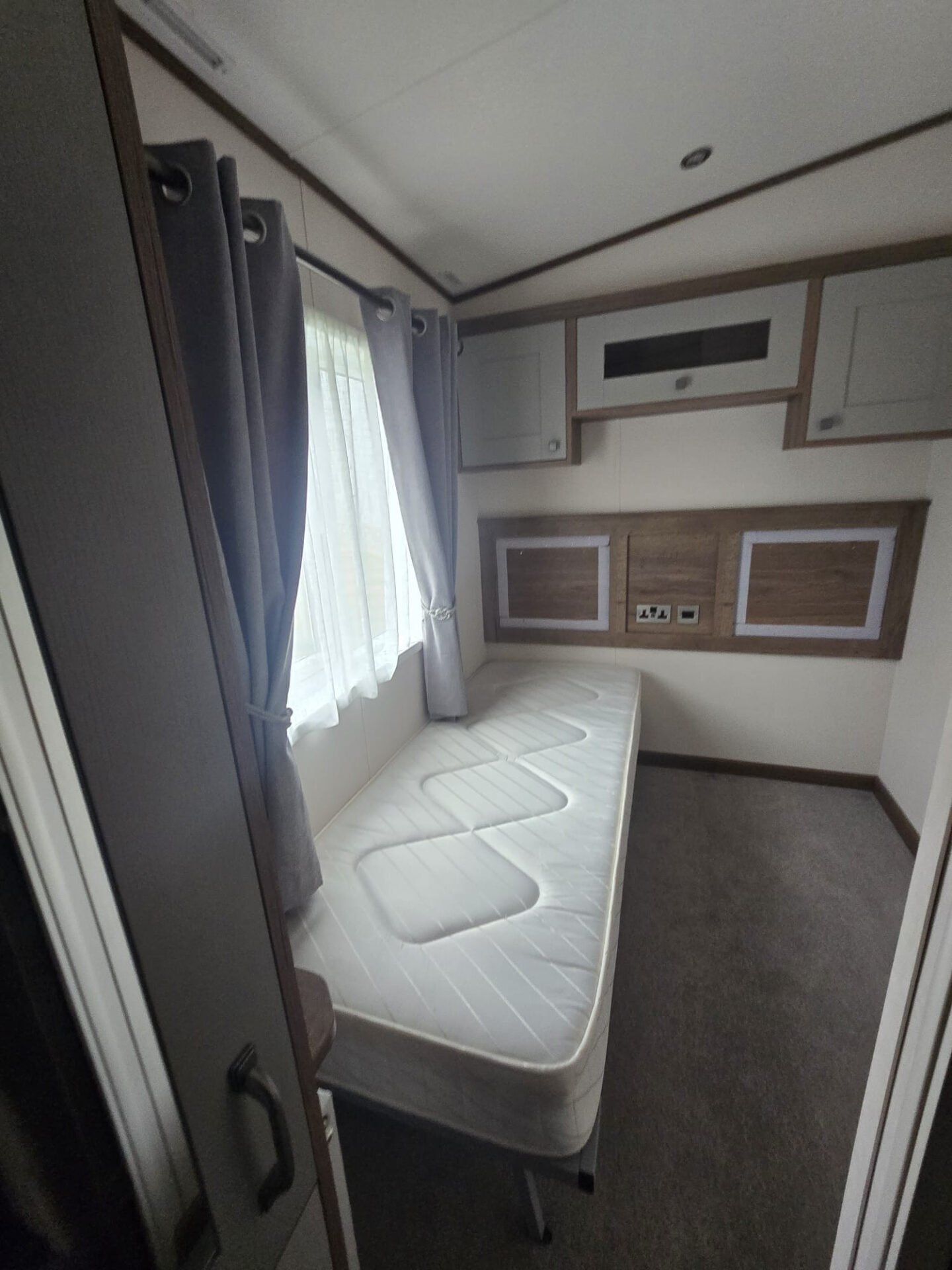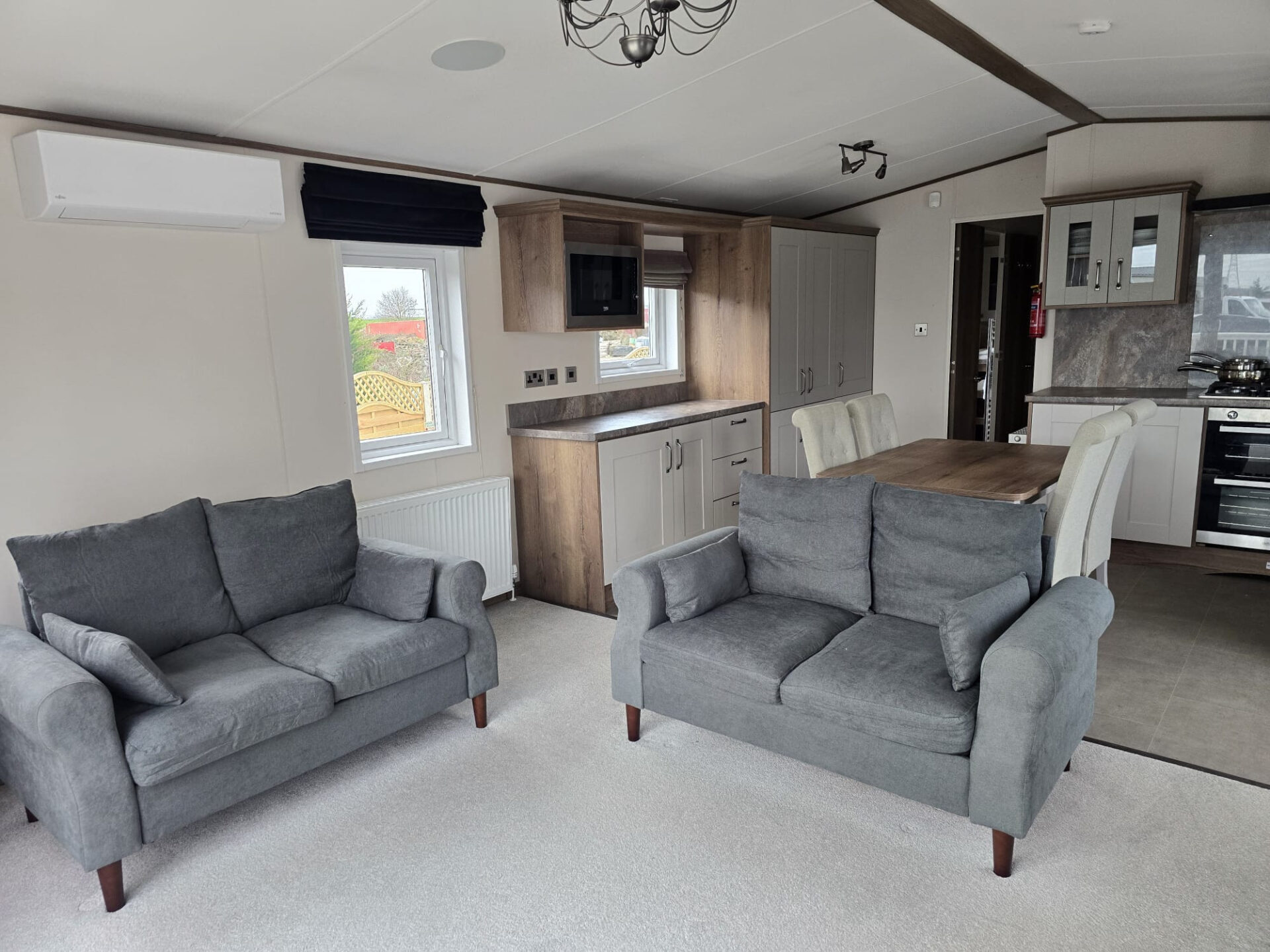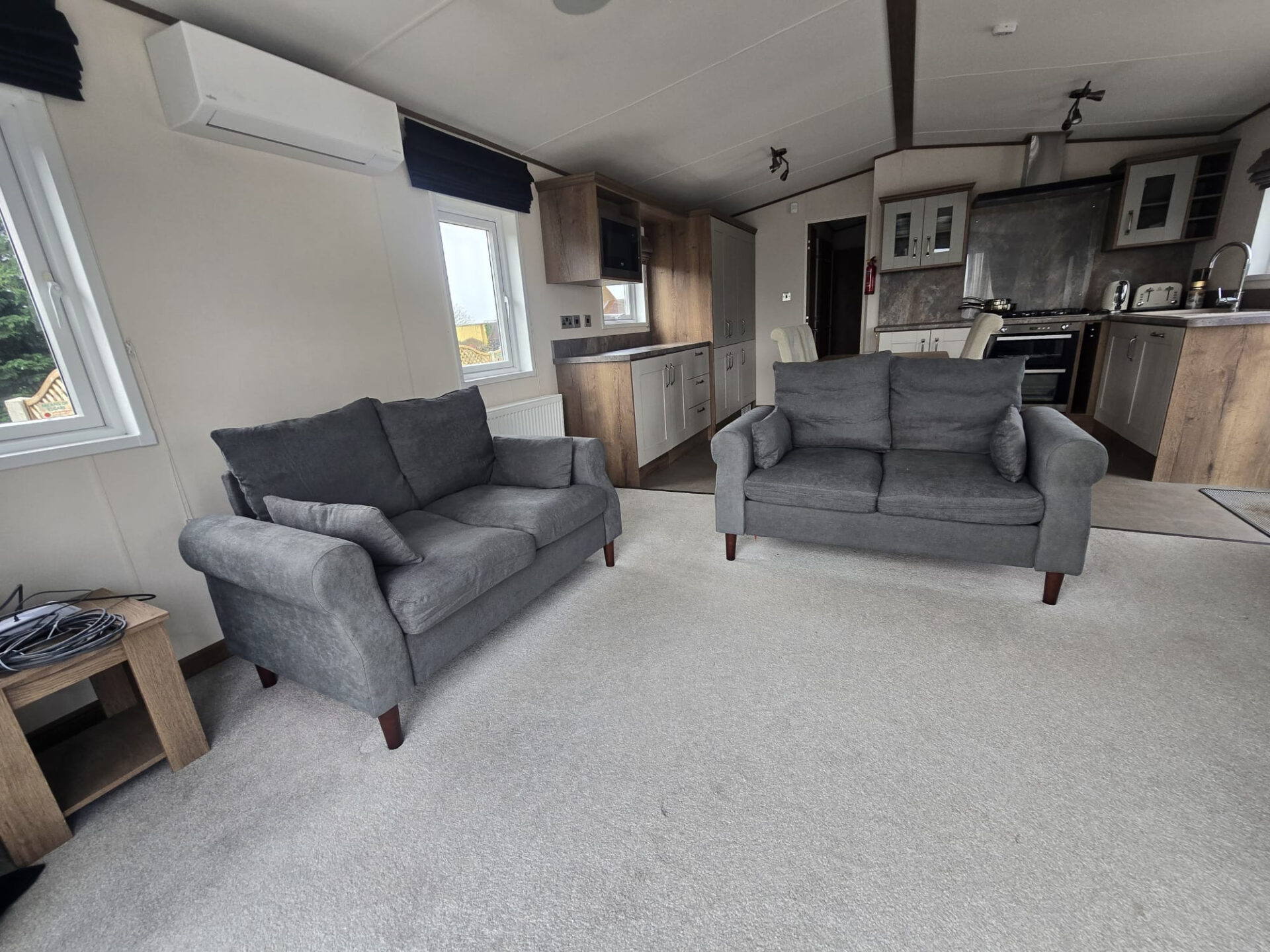 This pre-owned ABI (42'x14') lodge is perfect for those looking for a detached, easy-to-maintain, bungalow-style property. The lodge has an open plan kitchen, living and dining area, one double bedroom, a twin room and a single room, and two bathrooms.