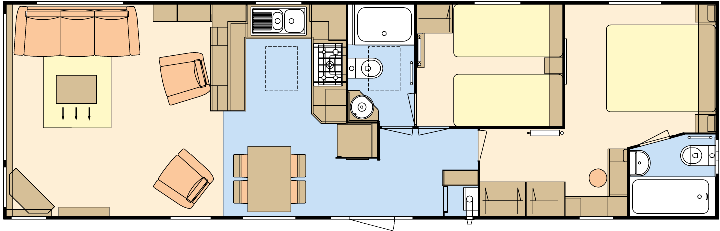 This brand new, modern-furnished Atlas Image (42'x13') luxury lodge is perfect for those looking for a detached, easy to maintain, bungalow-style property. The lodge has an open plan kitchen, dining and living area, two bedrooms and two bathrooms.