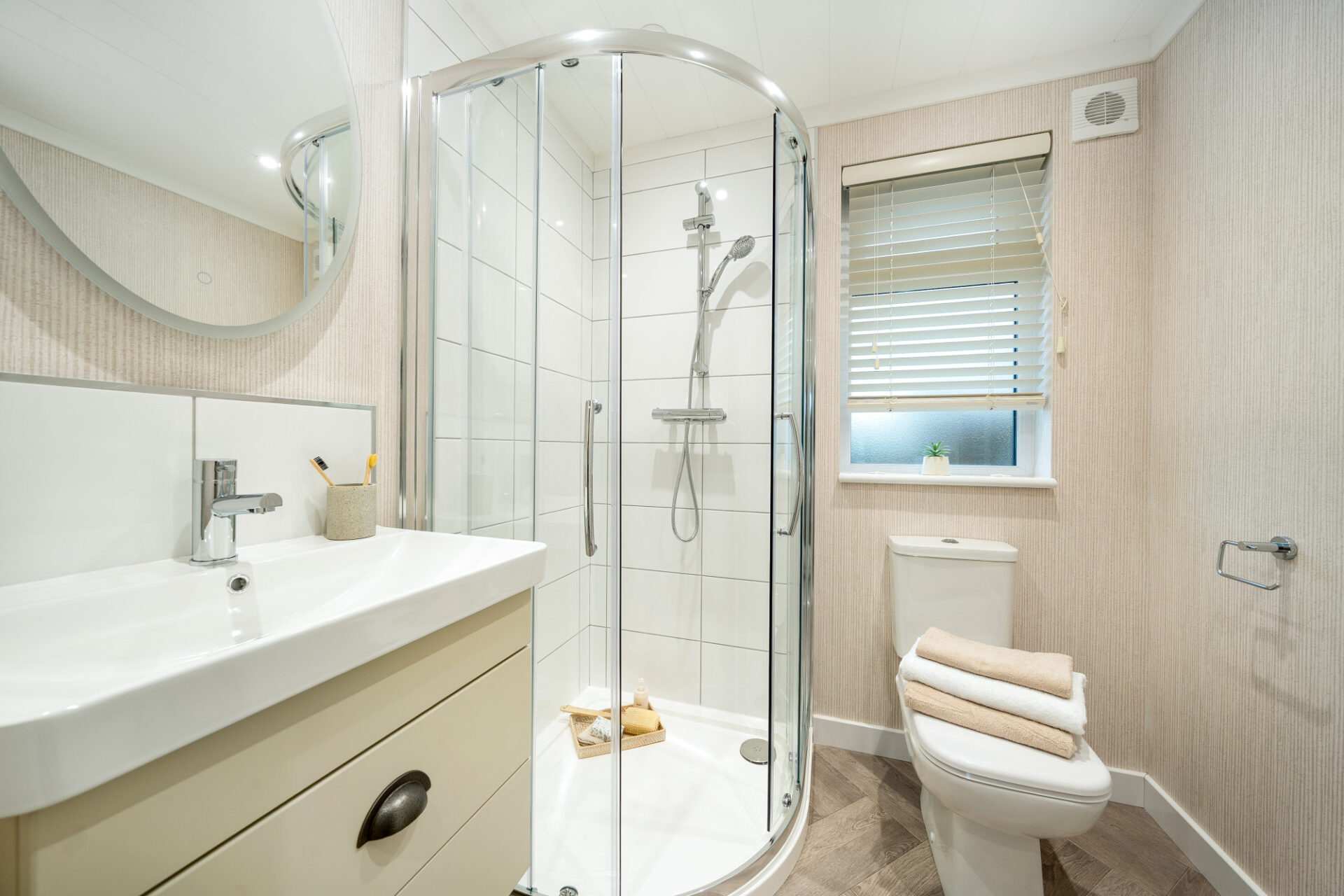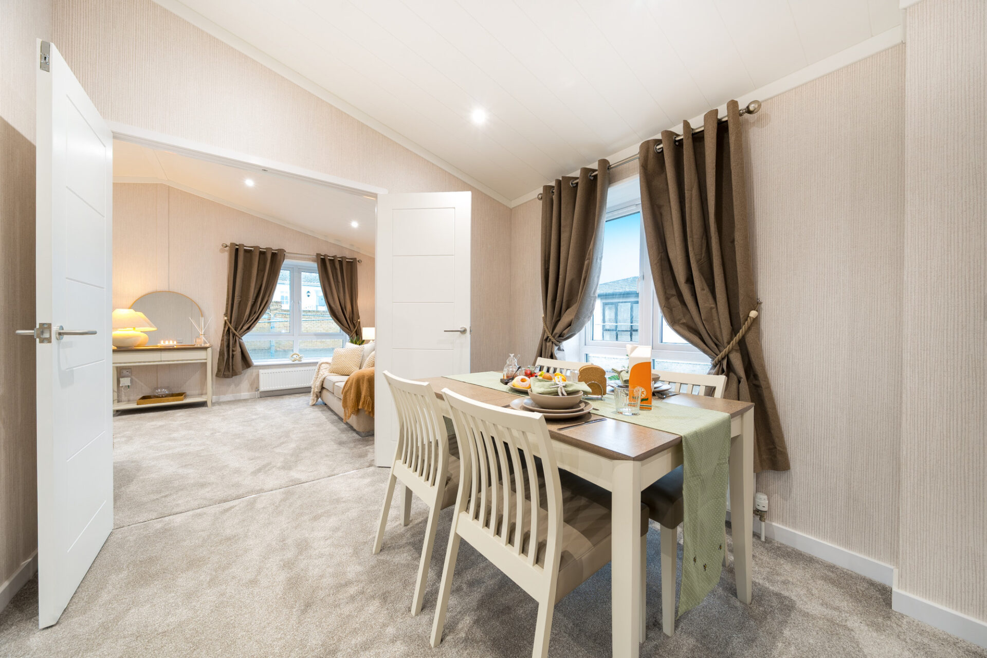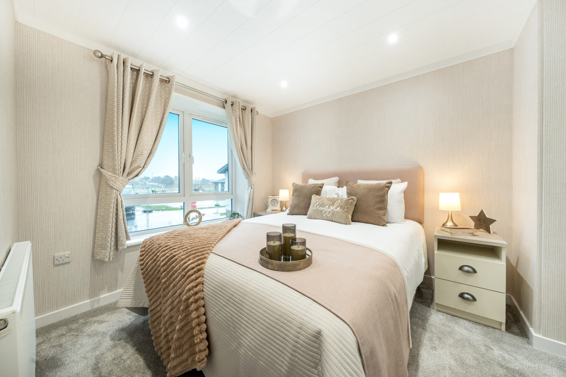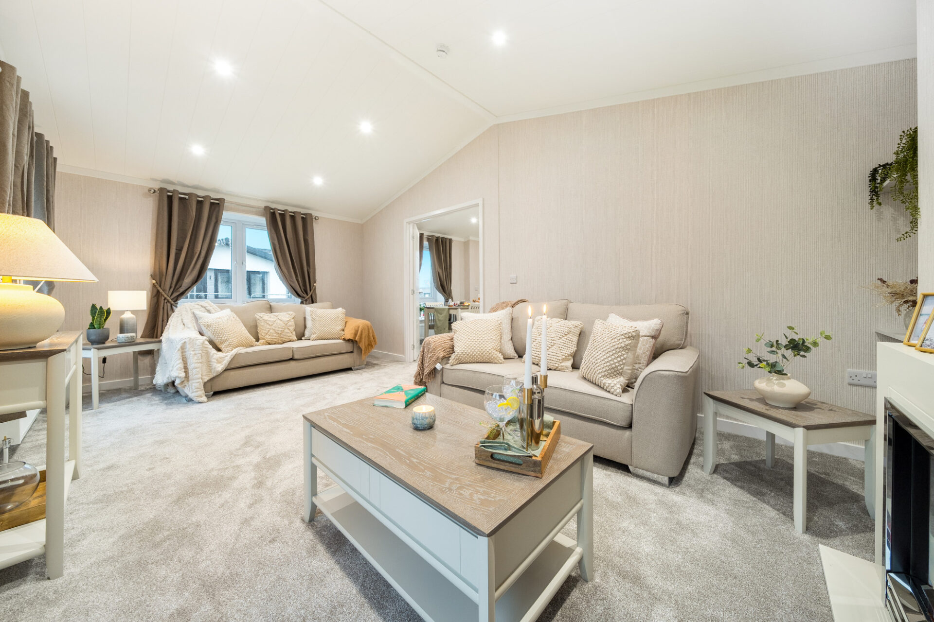This brand new, modern-furnished luxury Omar Image (40'x20') park home is perfect for those looking for a detached, easy-to-maintain, bungalow-style property. The home has a spacious kitchen with integrated appliances, dining area and comfortable living room. The master bedroom has an en suite and dressing area, there is a second double bedroom and a bathroom.