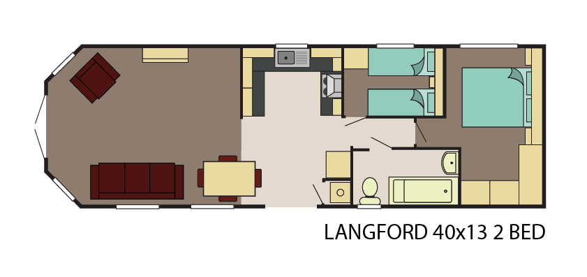 This brand-new, modern-furnished Delta Langford (41'x14') luxury lodge is perfect for those looking for a detached, easy-to-maintain, bungalow-style property. The lodge has an open plan kitchen and living area, one double bedroom, one single bedroom and a bathroom.