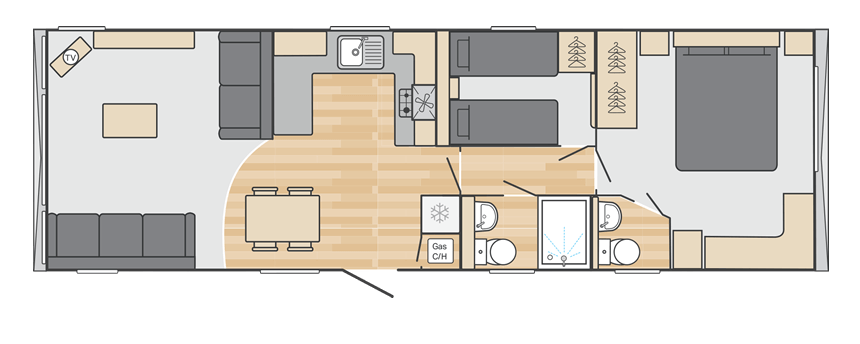 This brand new, modern-furnished Swift Margaux (38'x12') luxury lodge is perfect for those looking for a detached, easy to maintain, bungalow-style holiday property. The lodge is built to a high specification, with an open plan kitchen and living area, two bedrooms, and en suite and a bathroom.