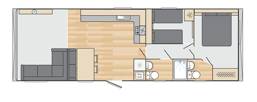 This brand-new, modern-furnished Swift Morlaix (35'x12') luxury lodge is perfect for those looking for a detached, easy-to-maintain, bungalow-style property. The lodge has an open plan kitchen, living and dining room, two bedrooms, an en suite WC and a shower room. The landscaped exterior boasts parking for 2 cars.