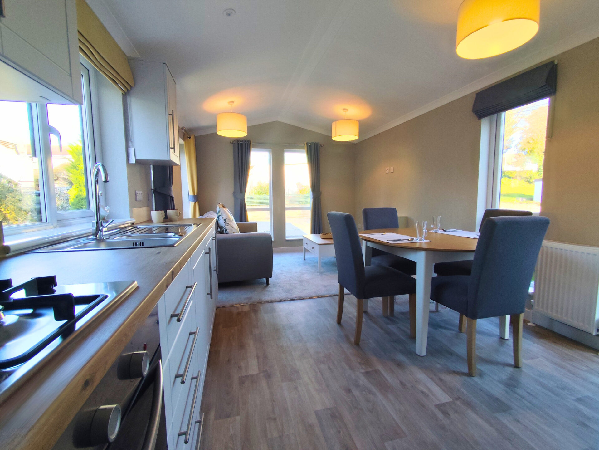 This brand new, modern-furnished Omar Newmarket (35'x12') luxury park home is perfect for those looking for a detached, easy to maintain, bungalow-style property. The home has a open-plan lounge, dining area and kitchen, one large double bedroom with built-in storage, and a luxurious shower room. The home also has a car bay and garden shed.