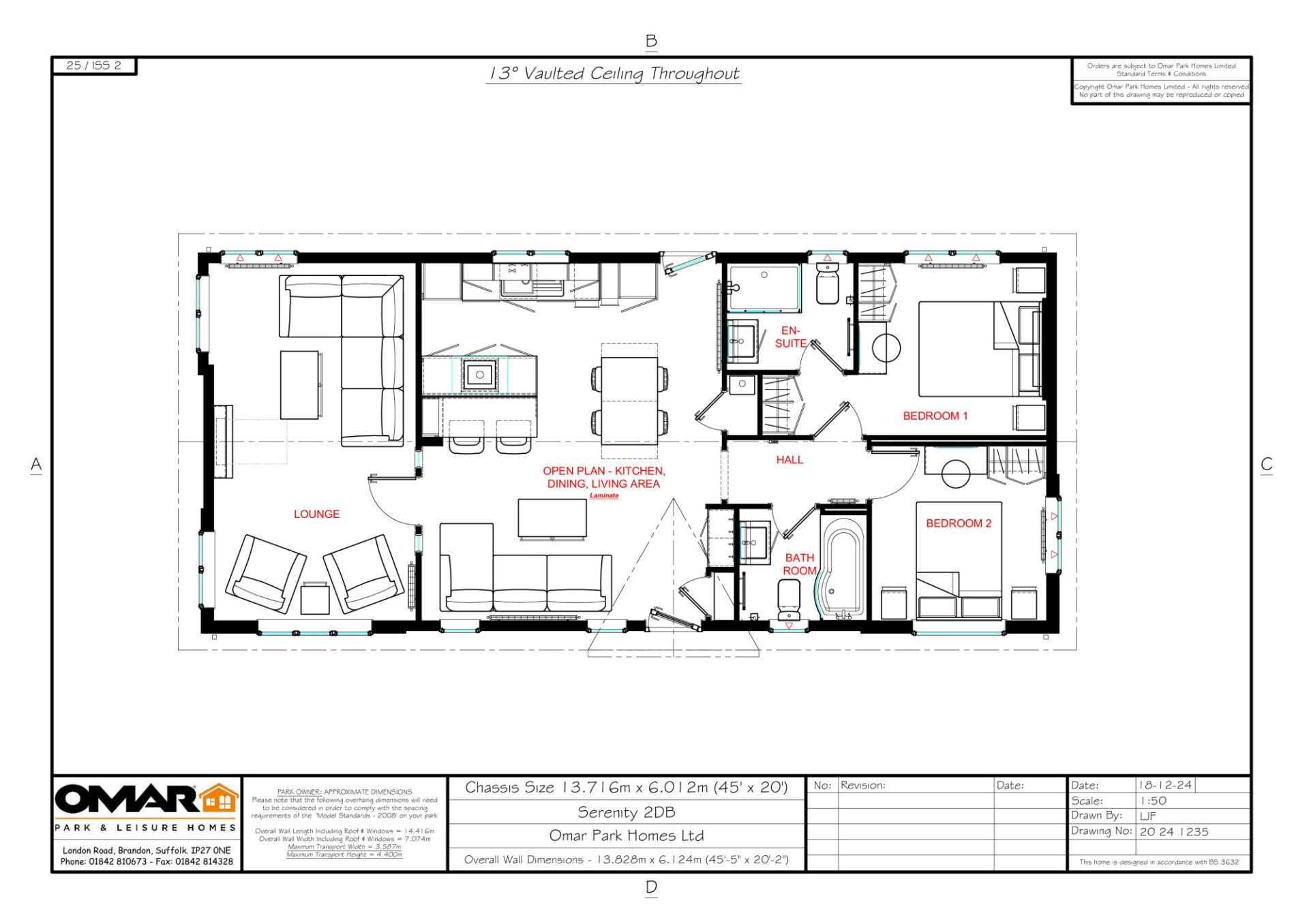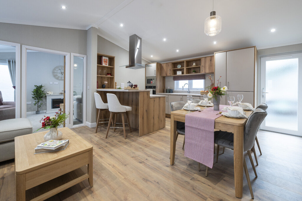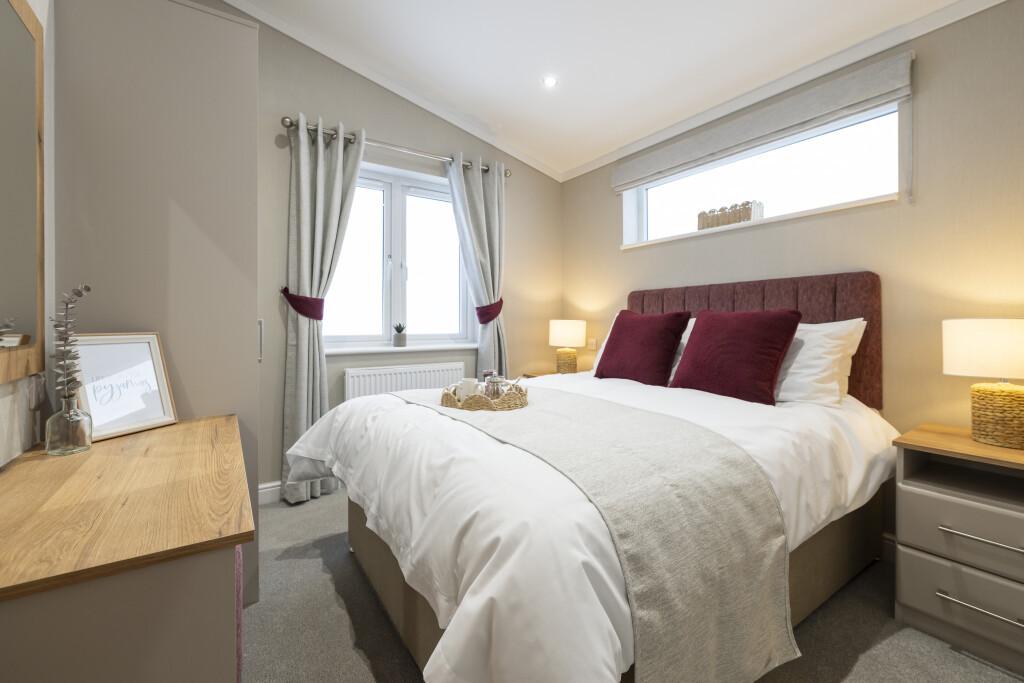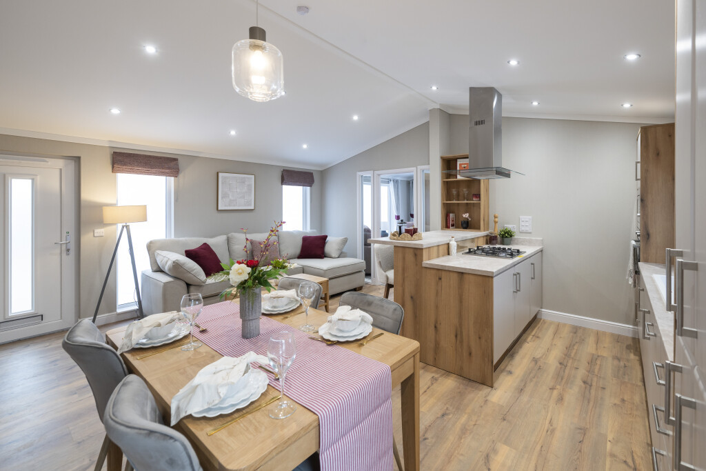 This brand new, modern furnished Omar Serenity (45'x20') park home is perfect for those looking for a detached, easy to maintain, bungalow-style property. The home features private parking, an open plan kitchen and dining area with integrated appliances and breakfast bar. The living space enjoys large windows and electric fireplace. The home has a double master bedroom with built in wardrobes and en suite, there is a second double bedroom and a bathroom. The garden area is neat and easy to maintain.