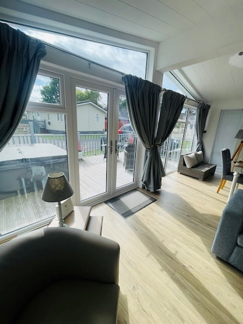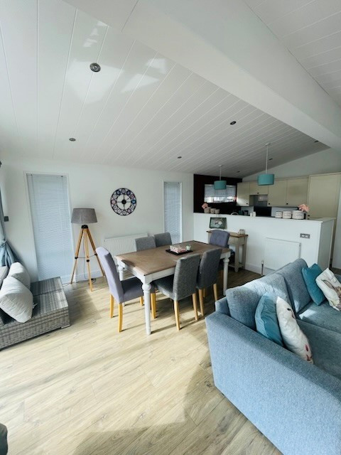 This pre-owned, modern-furnished Dream Lodge Provence (41'x22') luxury park home is perfect for those looking for a detached, easy-to-maintain, bungalow-style property. The home has a modern, spacious kitchen with integrated appliances, a comfortable living and dining area. The master bedroom has an en suite, there is a second double bedroom and a bathroom. The home also has a private decking.