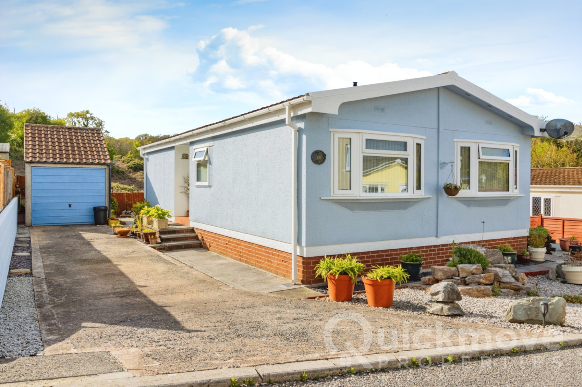 This well-maintained pre-owned park home (30'x20') is perfect for those looking for a detached, easy-to-maintain, bungalow-style property. The home has a kitchen, dining area and spacious living room. There are two bedrooms and a shower room. The home has a large, low-maintenance garden with a decking area and views of the conservation area. There is also a garage and a driveway for 3 cars.