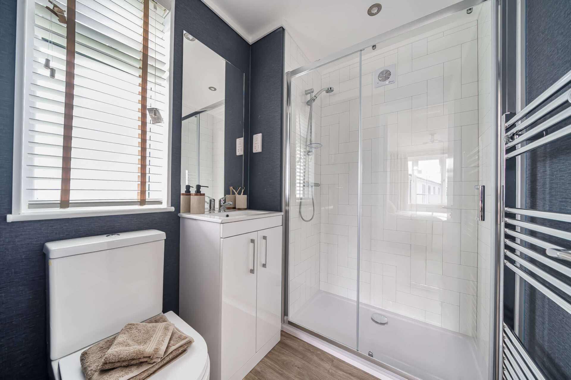 This brand new, modern-furnished Avanti (40'x20') luxury park bungalow is perfect for those looking for a detached, easy to maintain, bungalow-style property. The home has an open plan kitchen and dining room, with island, breakfast bar and integrated appliances. There is a comfortable living room with large windows, two double bedrooms, en suite and bathroom.