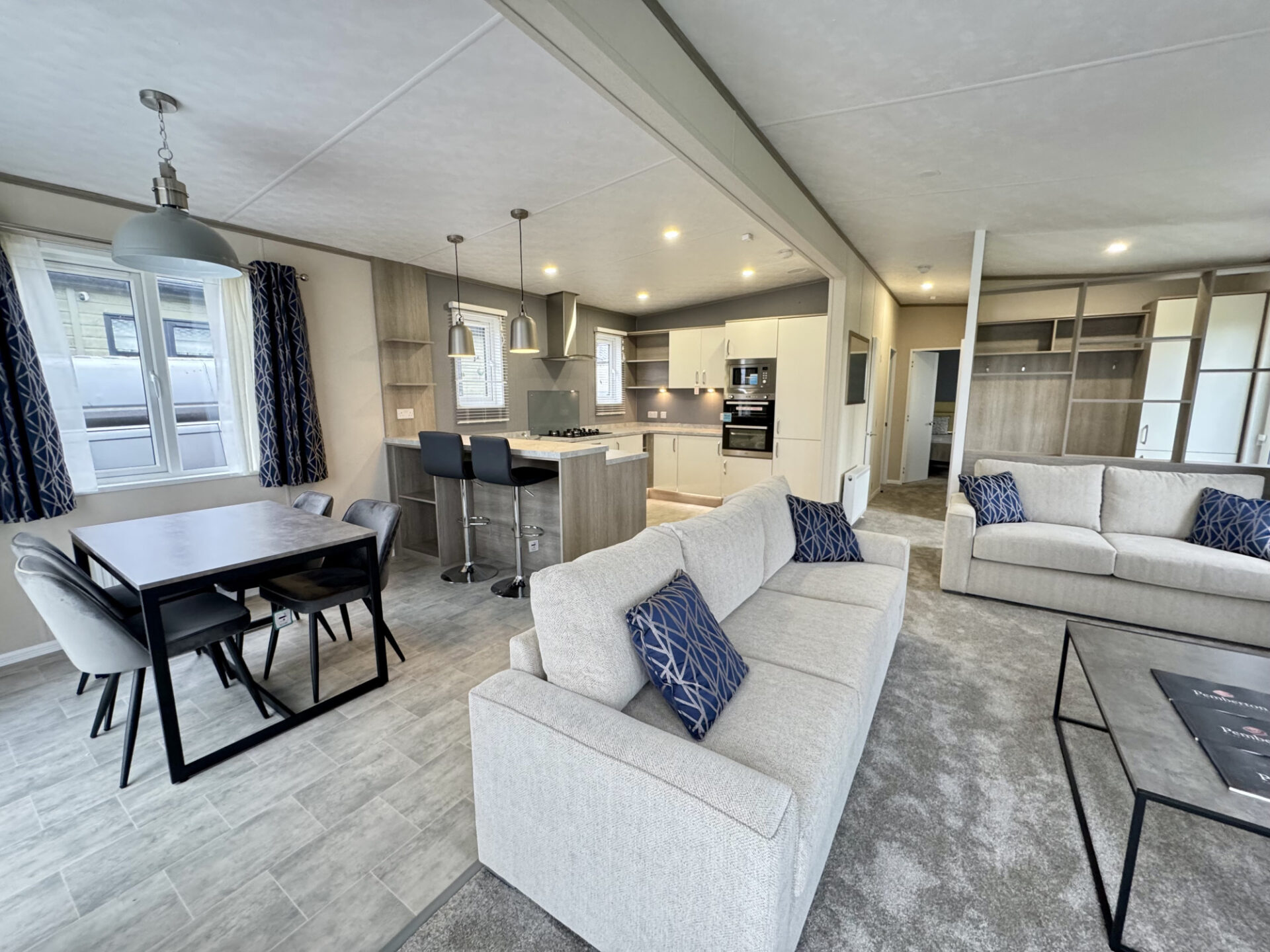 This brand new, modern-furnished Skydale (40'x20') luxury lodge is perfect for those looking for a detached, easy to maintain, bungalow-style property. The lodge has an open plan layout, a modern kitchen with integrated appliances, comfortable living area and French doors leading onto the decking. There are two bedrooms and two bathrooms.