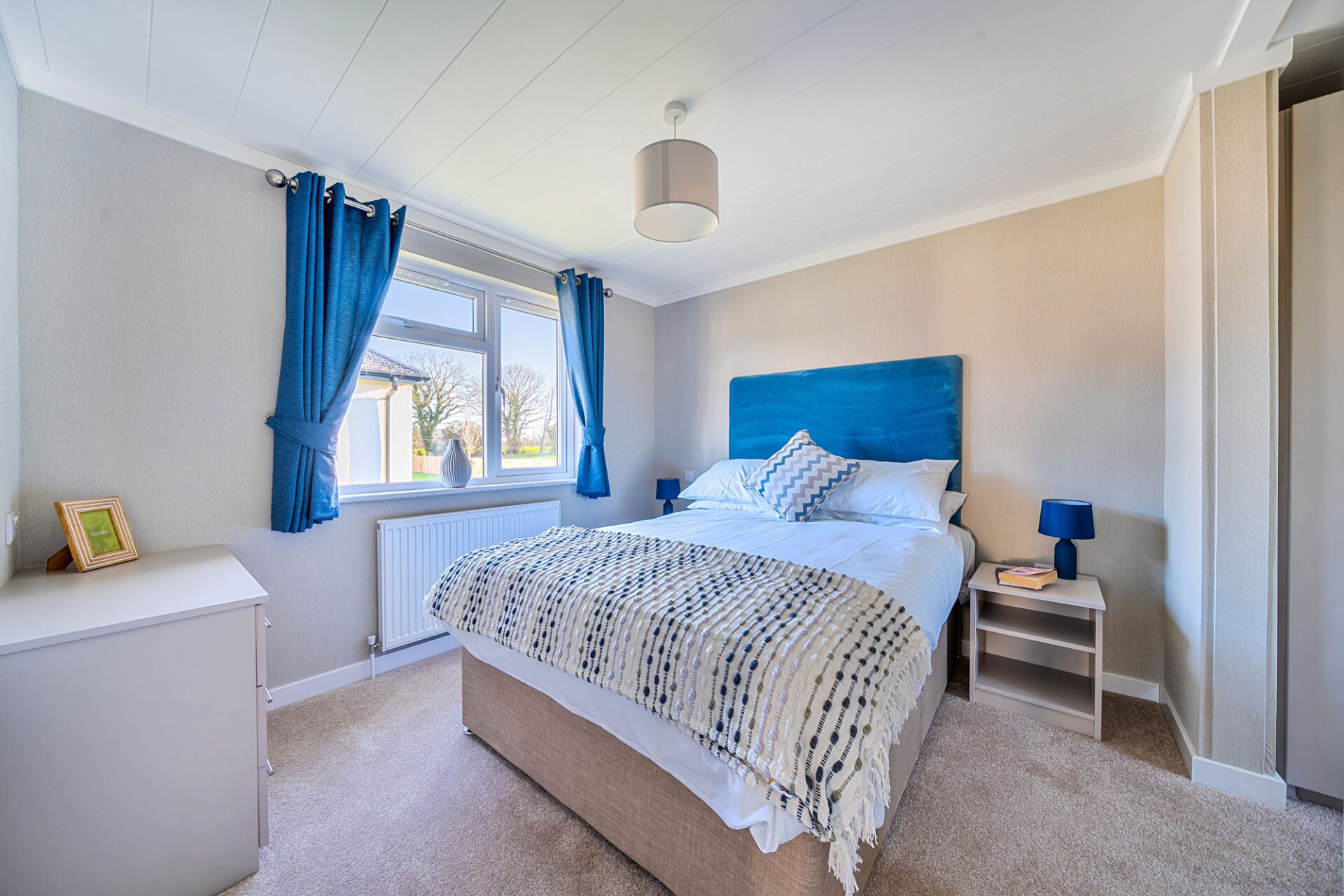 This brand-new, modern-furnished Omar Westbury (40'x20') luxury park home is perfect for those looking for a detached, easy-to-maintain, bungalow-style property. The home has a spacious kitchen with integrated appliances, and a dining area, leading to a comfortable living room. There are two double bedrooms, an en suite and a bathroom.