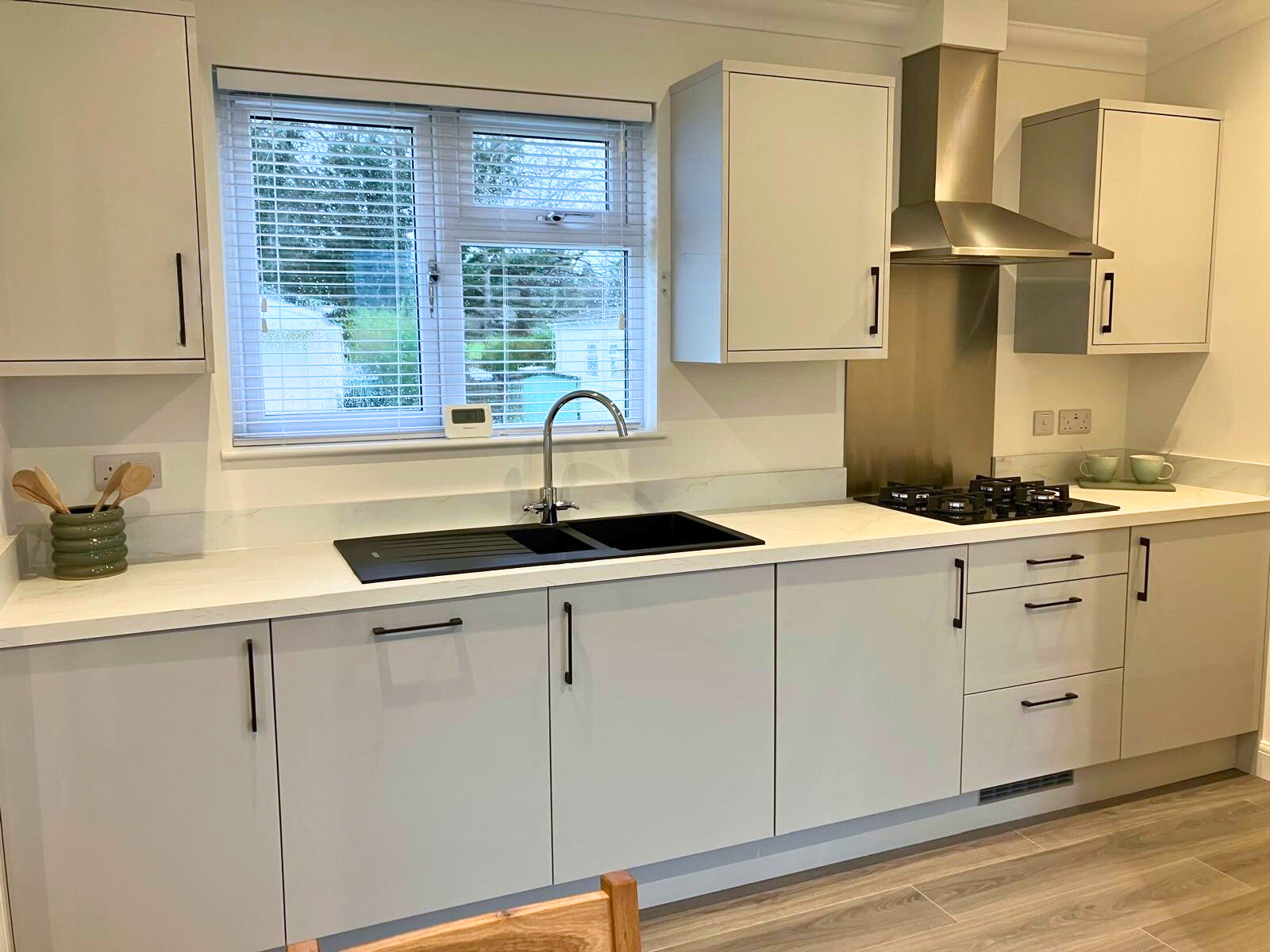 This brand new, modern-furnished Manor Lancaster (40'x12') luxury park home is perfect for those looking for a detached, easy to maintain, bungalow-style property. The home has an open plan living and kitchen area, one double bedroom and a bathroom. The home has a garden space with a shed.