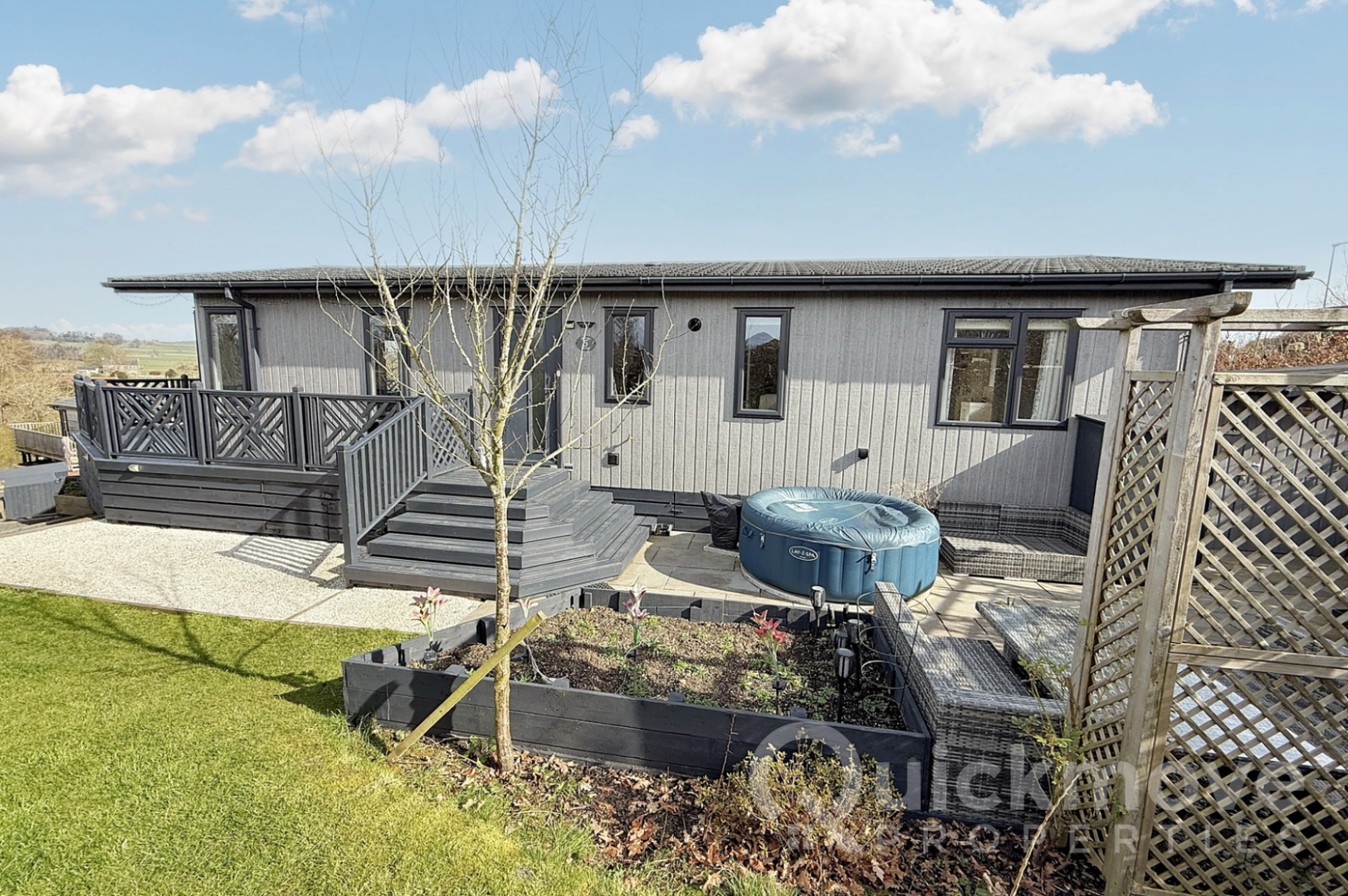 This wonderful Prestige Navigator (45'x22') lodge occupies an elevated position on this residential development of only 12 homes. The home features an open plan kitchen, living and dining room, with French doors leading out onto the large decking. There is a utility room, a study, two double bedrooms, an en suite and a bathroom. The home has a large garden space with a shed and patio.