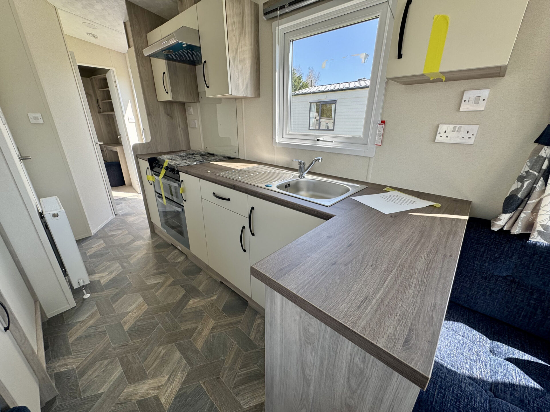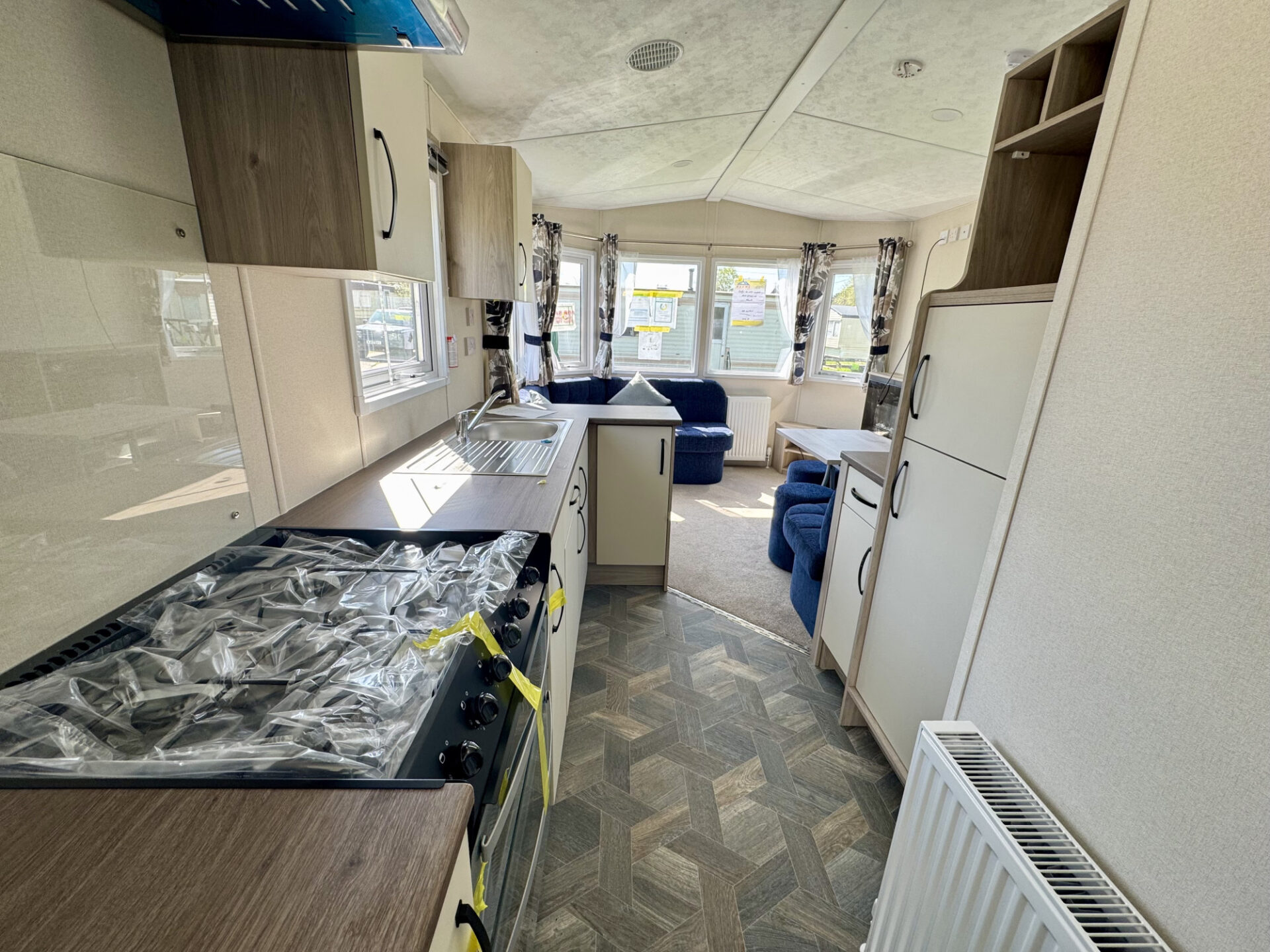 This brand new, modern, furnished Avalon lodge (28'x10') has an open plan kitchen, dining and living room area with integrated appliances. There is a double bedrooms, a second twin bedroom and a shower room.