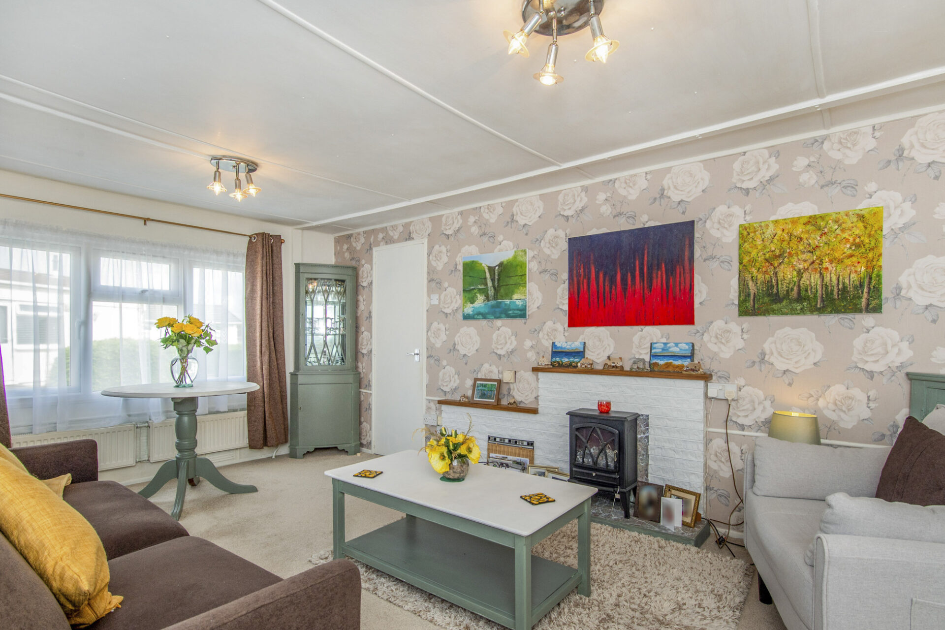 This pre-owned Stately Woburn (30'x20') park home is perfect for those looking for a detached, easy-to-maintain, bungalow-style property. The well maintained home has a spacious kitchen and dining area, comfortable living room with an electric fireplace, two double bedrooms with built in wardrobes and a shower room. The home has a garden space with a shed and an allocated parking space. The home has been externally renovated with new cement boards, rendering, insulation and windows.