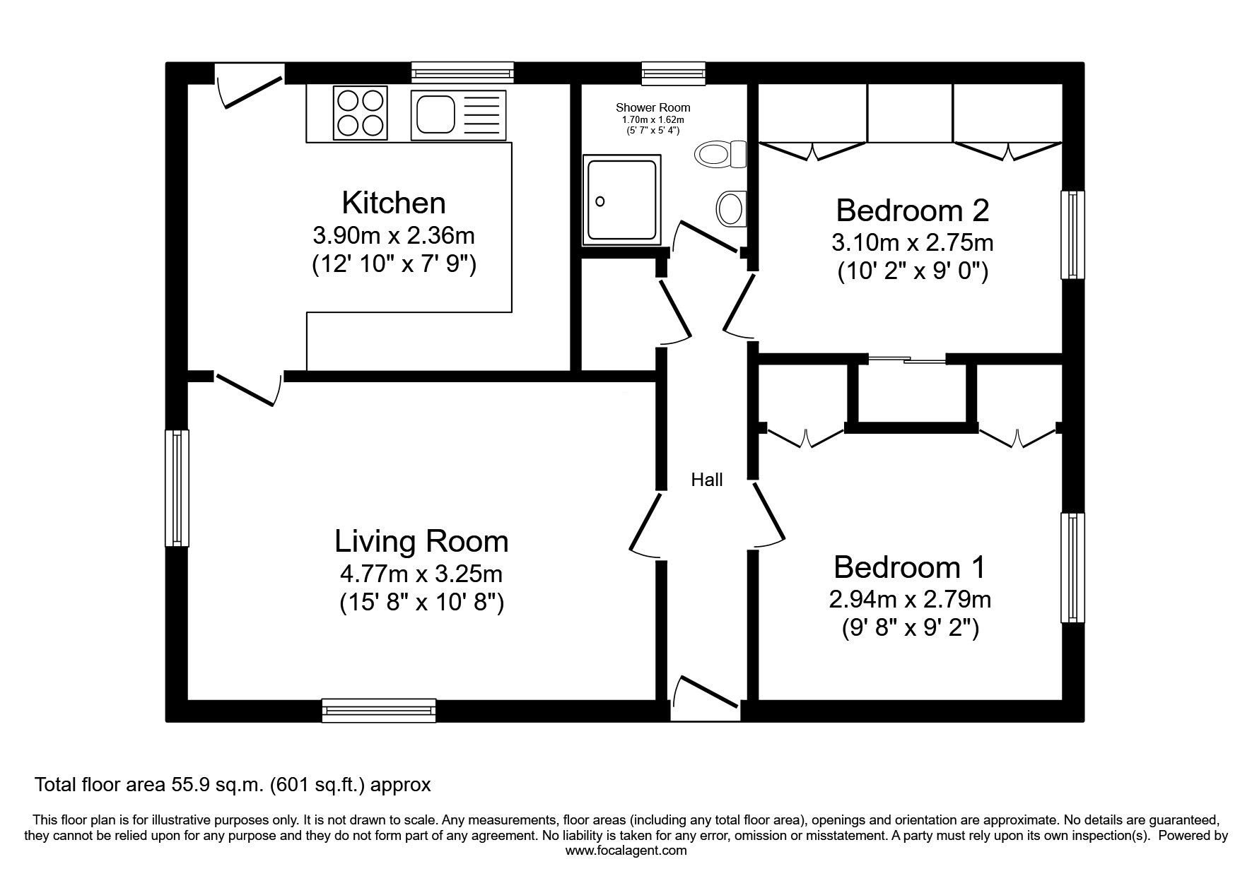 - Two bedrooms