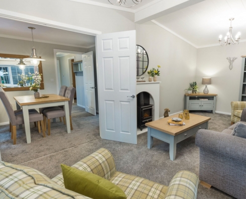 Luxury park homes are perfect for those looking for a detached, economical, bungalow-style property. They feature a fully-fitted kitchen with integrated appliances and living areas, with modern, comfortable furniture. Each home has a driveway and they are set on landscaped plots with easy-to-maintain garden areas.