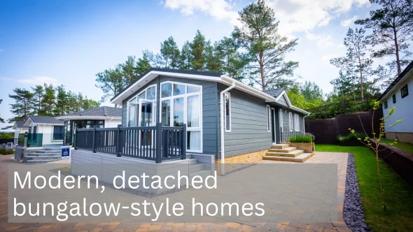 These modern, detached, bungalow-style park homes come fully-furnished with easy to maintain garden areas and off road parking.
